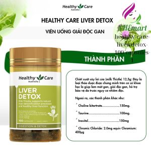 Healthy Care Liver Detox 100 Capsules are a product extracted from milk thistle, known for its ability to detoxify the liver, purify the body, reduce acne, alleviate allergies, and protect the liver from potential toxicity.