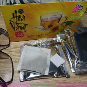 Golden Camellia Tea is made from 60% dried yellow flowers along with 20% black musk and 20% black tea, bringing you a convenient tea bag product with a special aroma and benefits such as liver purification, skin beauty, regulating blood and many other benefits for health.